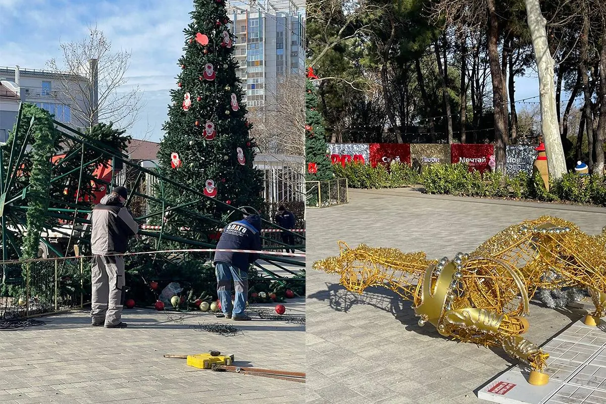 Из-за ураганного ветра уберут часть новогодних украшений в центре Анапы.