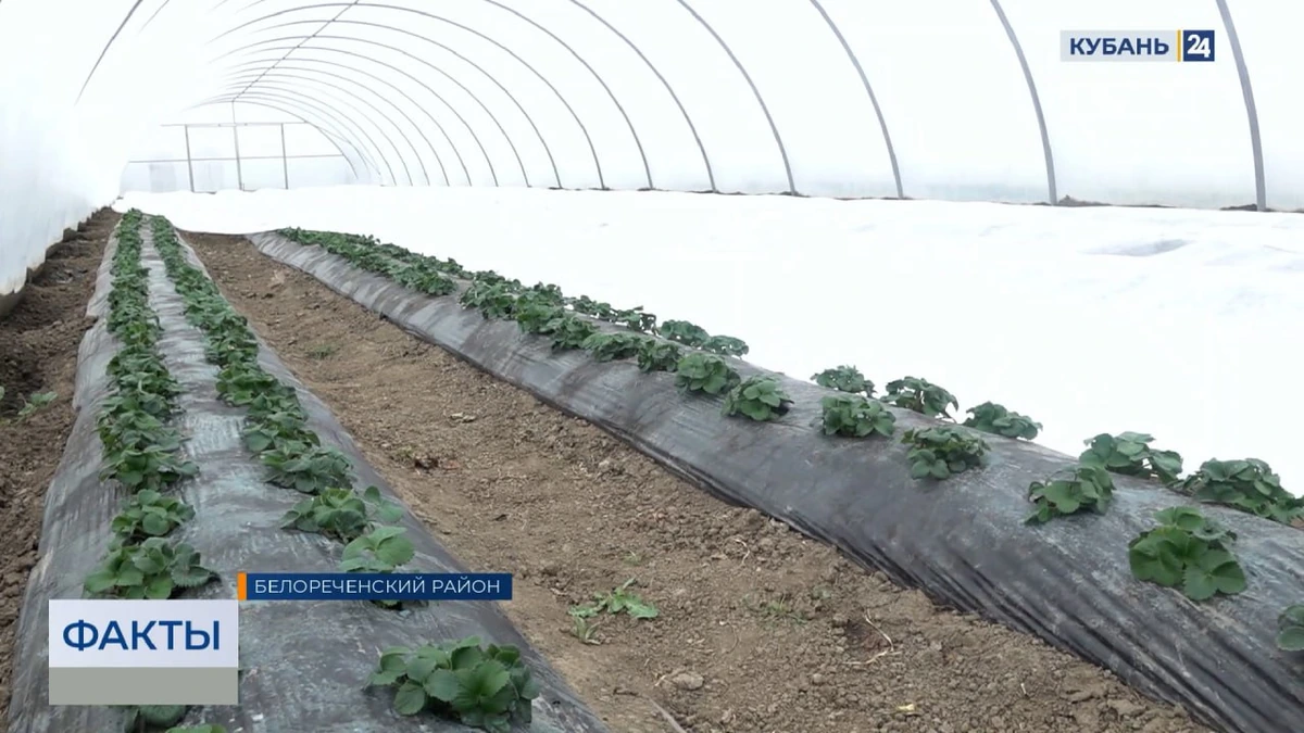 «Сейчас клубника только просыпается после зимы. Весной кусты накрывают агроспаном, чтобы защитить растения и создать комфортную температуру для активного роста. Здесь подписаны имена тех, кто сажал клубнику, чтобы во время сбора знать, к кому обратиться и попросить оценить качество работы», ― сообщает корреспондент телеканала «Кубань 24» Дарья Остапец.