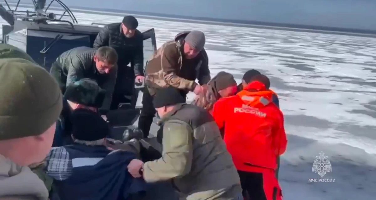 Льдина откололась, когда на ней рыбачили 17 человек. Они не заметили, что лед откололся и их унесло на расстояние от берега.