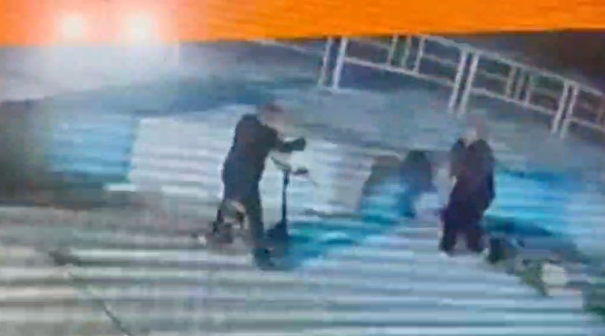 Момент неудачного ограбления попал на камеры видеонаблюдения. На кадрах видно, как злоумышленник на самокате нападает на прохожего, угрожая предметом, похожим на пистолет.