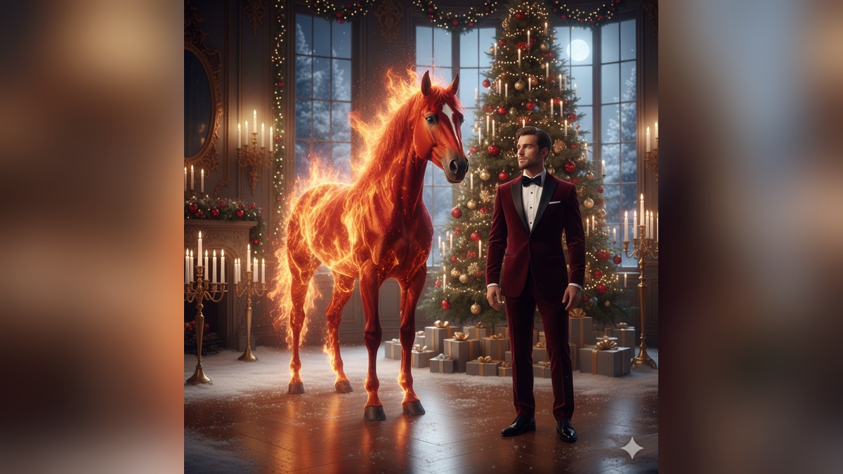 Также не забудьте про огонь. Свечи, гирлянды, фонарики — все это обязательно. Главное — не забывайте про технику безопасности, Лошадь пожар тушить не будет.