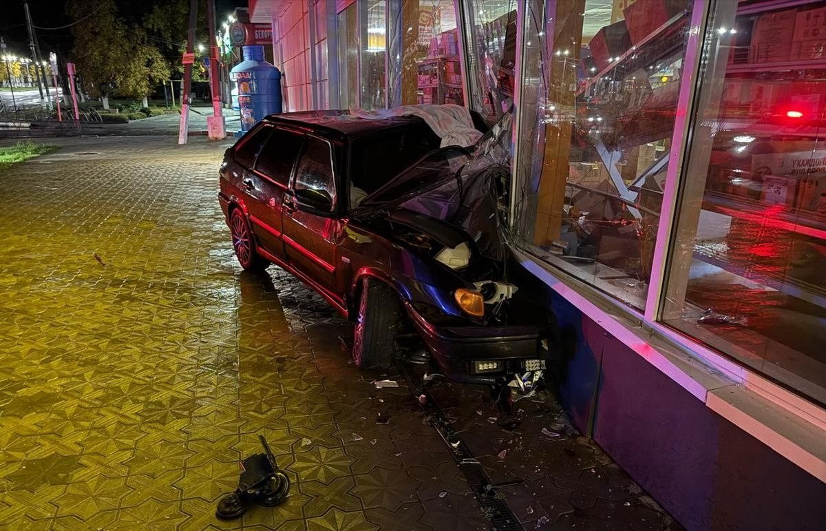 По предварительным данным, 18-летний водитель автомобиля марки «Лада211440» не справился с управлением. Машина вылетела с проезжей части и врезалась в витрину.