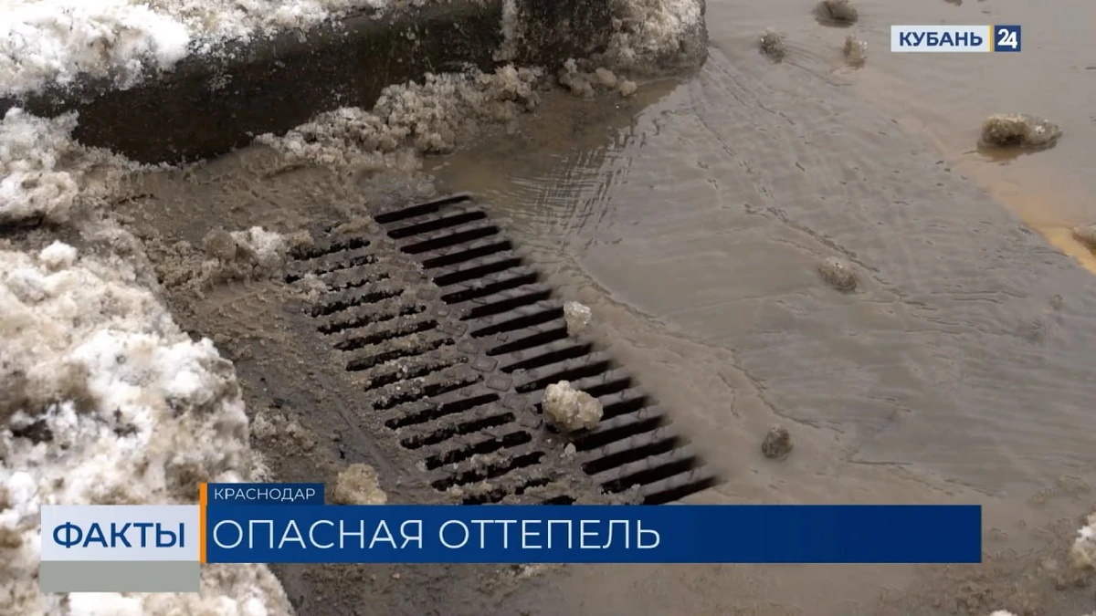 «Тротуары и дороги обрабатывают противогололедными материалами. В основном это песко-соляная смесь. Если кристаллы растворятся, то песок никуда не денется, а вместе с водой попадет в канализацию», — рассказывает корреспондент телеканала «Кубань 24» Мария Яцук.