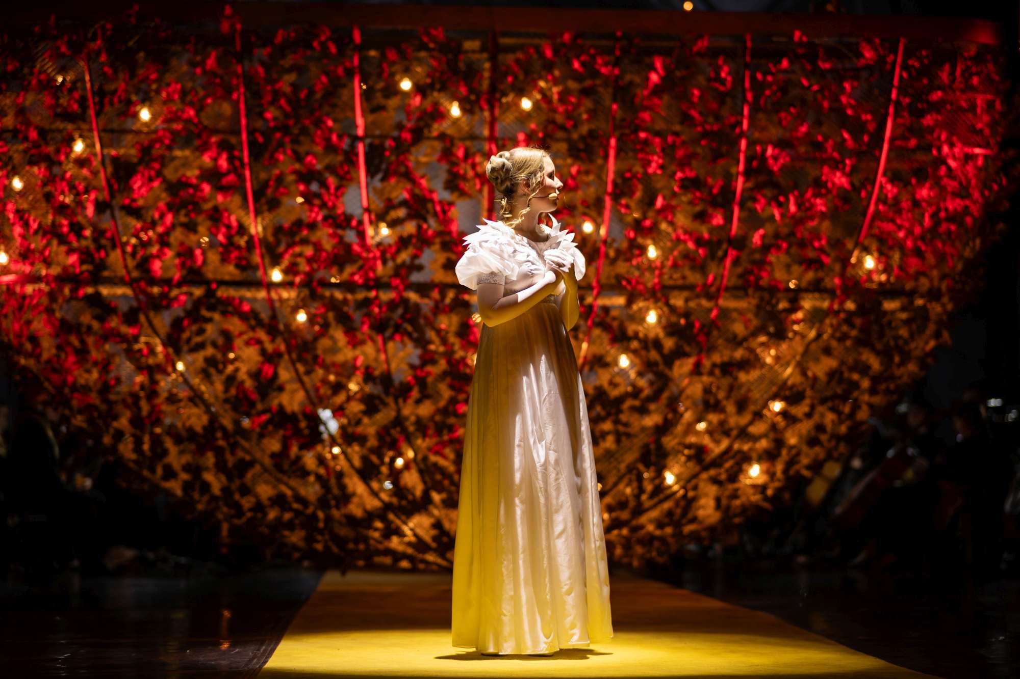 В основу спектакля легла одна сцена из романа — бал. В нем показана романтическая история главных героев. Постановка включает элементы иммерсивного театра и театральной инсталляции. Зрители становятся участниками творческого процесса еще в фойе театра. Поэтому организаторы рекомендовали зрителям предусмотреть бальный дресс-код.