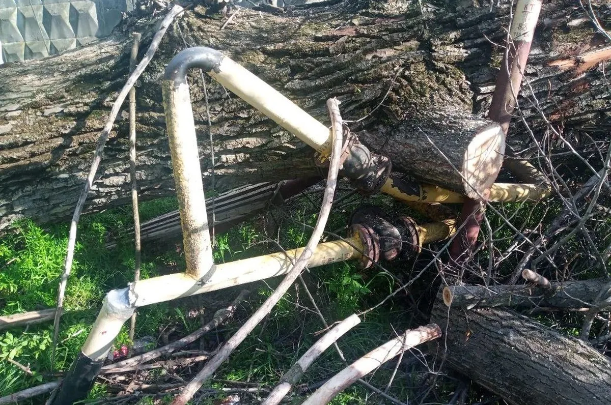 На газовую трубу упал ствол большого старого дерева. Под тяжестью ствола труба прогнулась. В краснодарской «Службе спасения» сообщили, что бензопилой спасатели частично распилили аварийное дерево и освободили поврежденный участок газовой трубы.