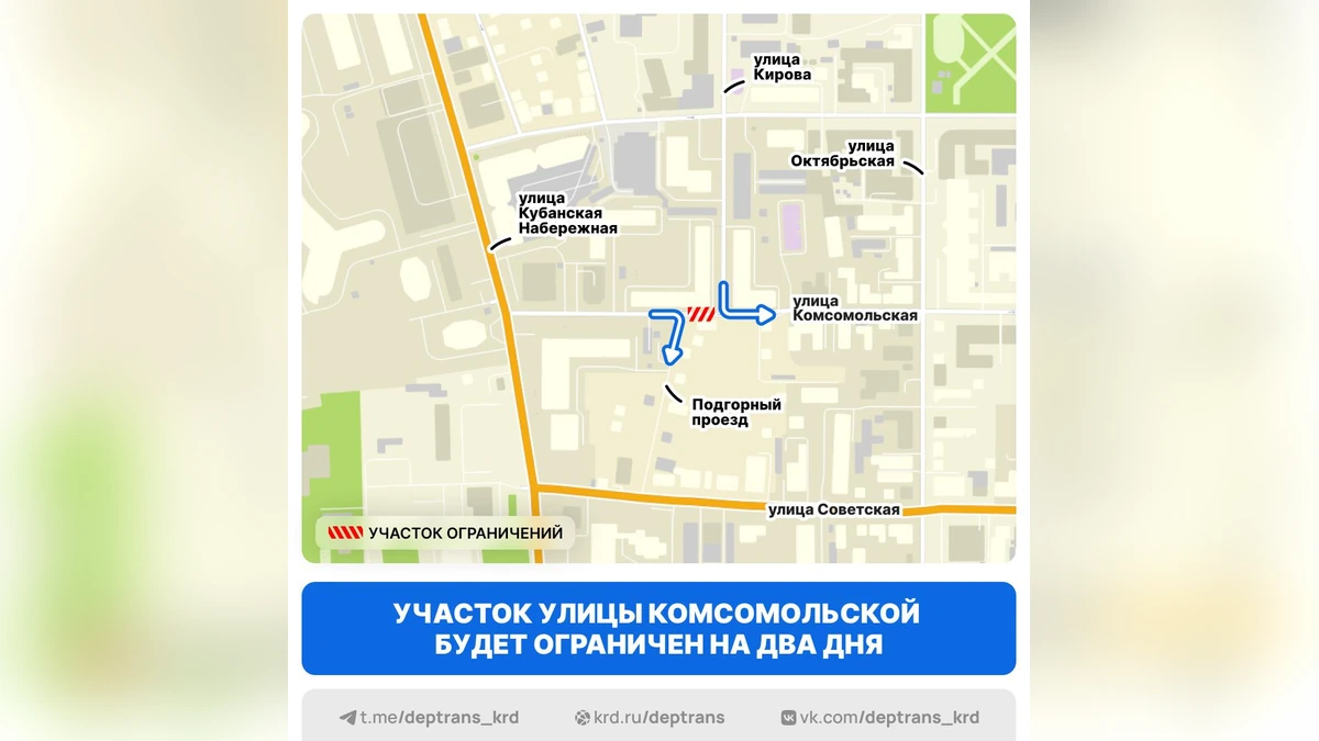 Автовладельцам рекомендуют быть внимательнее на этом участке и учитывать временные ограничения, сообщает пресс-служба департамента транспорта и дорожного хозяйства Краснодара.