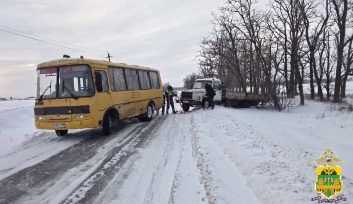 Полицейские посадили мужчину в патрульный автомобиль, чтобы он согрелся. Грузовик из кювета вытащили с помощью школьного автобуса. А затем сопроводили водителя до ближайшей заправочной станции, сообщили в пресс-службе ГУ МВД России по Краснодарскому краю.