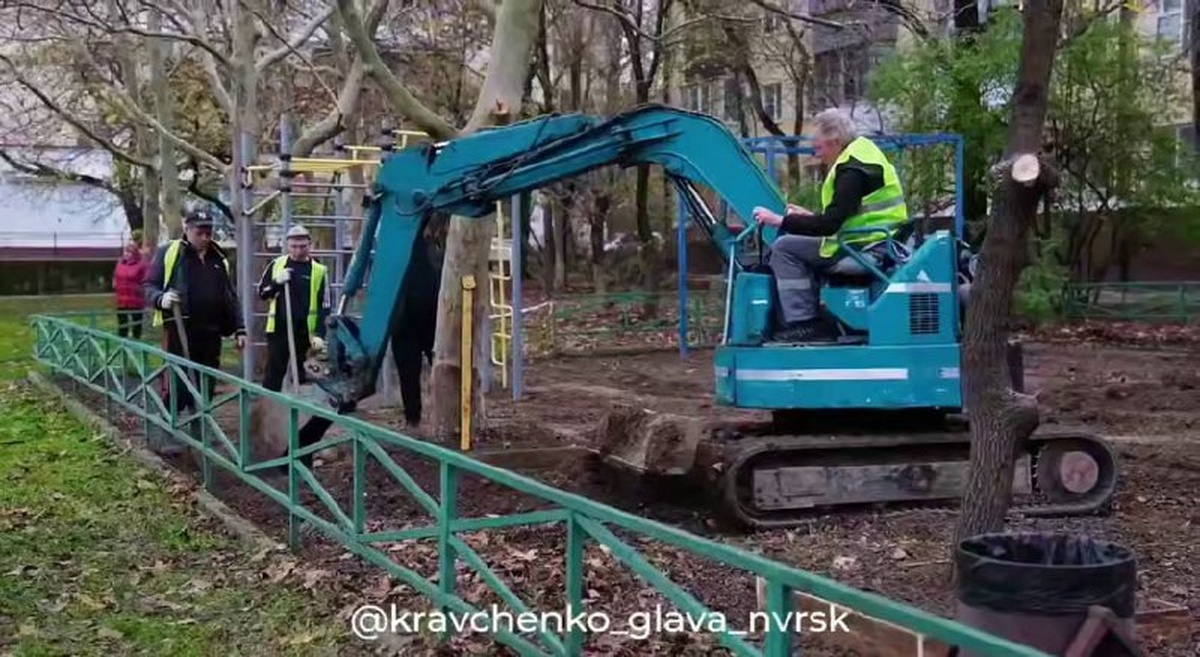 «К работам уже приступили: вчера выполнен частичный демонтаж конструкций, а с сегодняшнего дня в работу заступила спецтехника. Сейчас производится выборка грунта, планировка территории для обустройства щебеночного покрытия, с дальнейшим бетонированием и устройством качественного резинового основания», — написал Кравченко в Telegram.