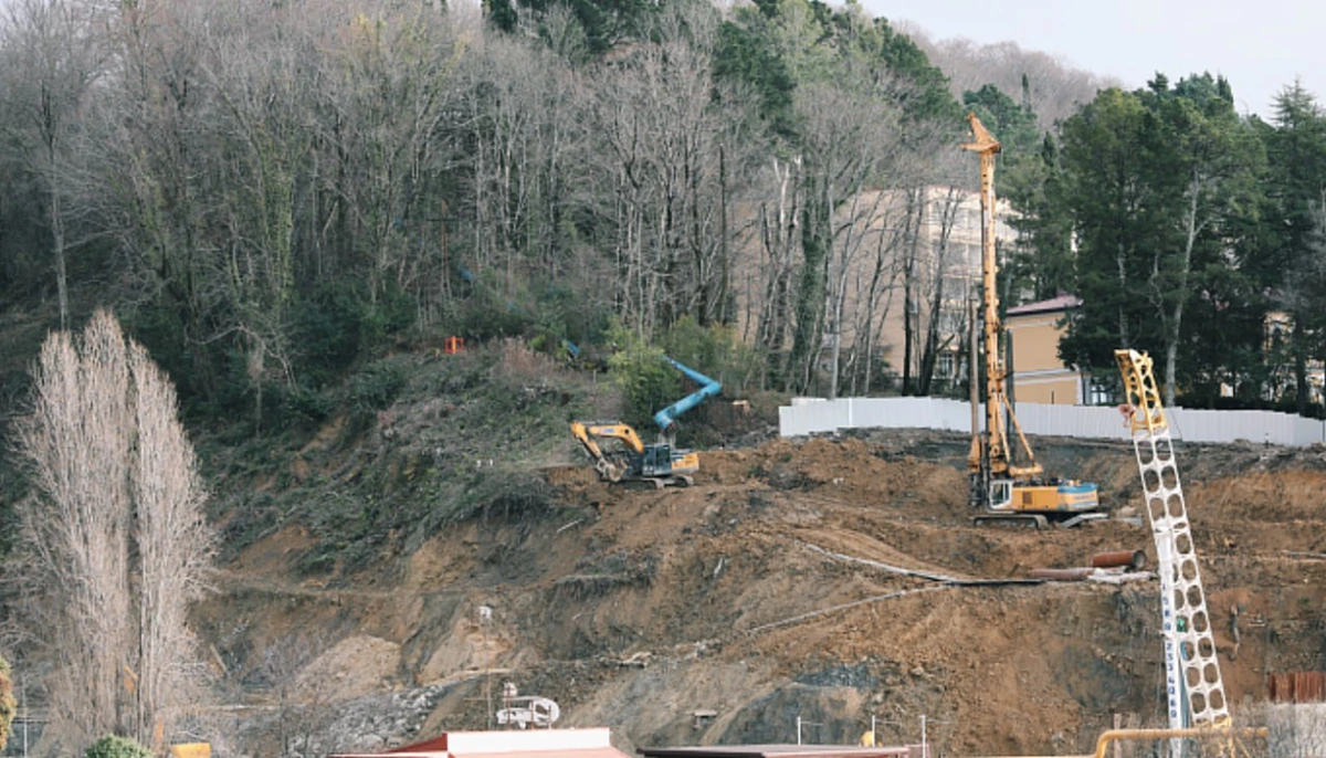 Для защиты опор от оползней предусмотрели возведение 14 железобетонных конструкций. Сейчас на участке идет строительство временной подъездной дороги и перекладка сетей водо- и газоснабжения, включая муниципальный магистральный водовод.