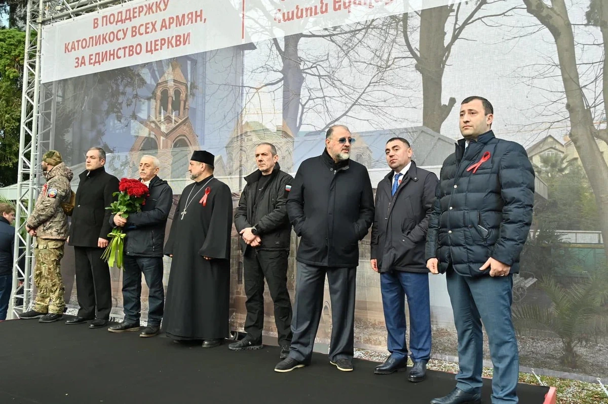 Заместитель руководителя Армянской общины Краснодарского края Геворг Саакян призвал собравшихся поддержать историческую целостность церкви и не допустить ее раскола. Также с речью выступил депутат кубанского парламента Арменак Тозлян.