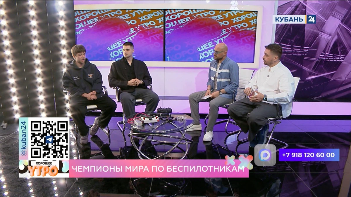 Гости рассказали, как в Краснодаре появилась школа БПЛА «Добро и Небо», в чем состоит основная цель этого проекта, какие есть программы обучения, сколько уже насчитывается выпускников, а также какие проходят чемпионаты по управлению беспилотниками.