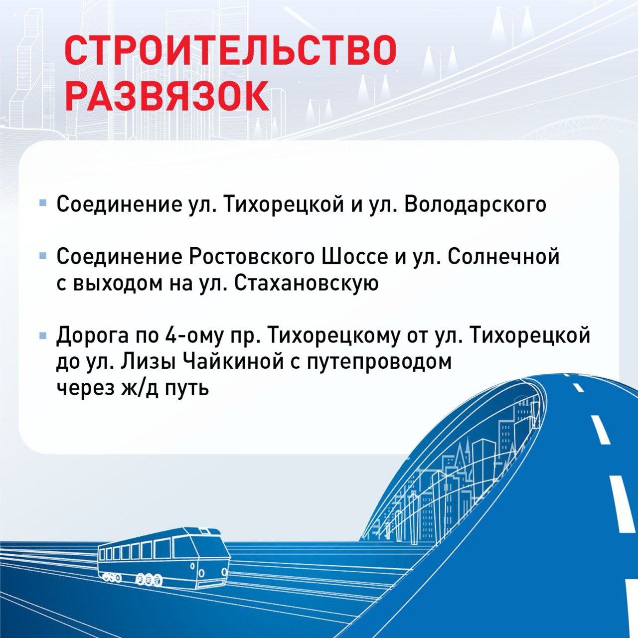 В Краснодаре построят и реконструируют дороги, мосты и развязки. На эти цели до 2035 года выделят 150 млрд рублей. В ближайшие три года финансирование составит почти 13 млрд рублей, из них 4 млрд — направят в 2025 году.
