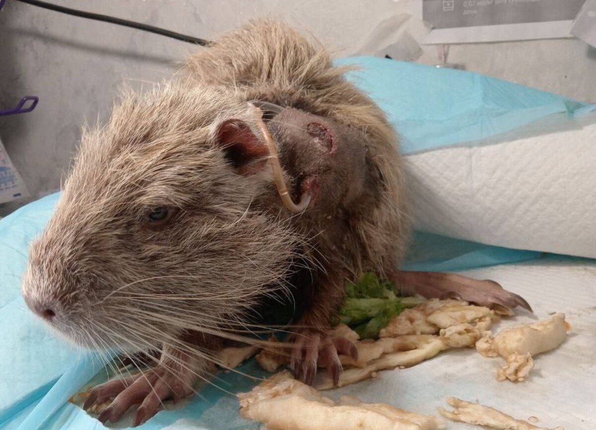 Волонтеры рассказали, что укусы у нутрии обнаружили в двух местах. Первоначальные предположения, что у животного сломана лапа, не подтвердились — все кости оказались целыми.