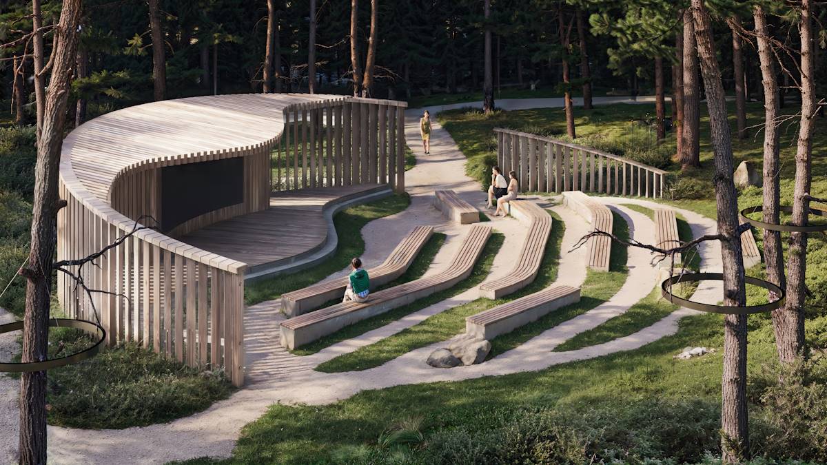 Символом обновленного парка станет «зеленое кольцо» — прогулочная тропа по лесной части с зонами релаксации, интерактивными инсталляциями и детскими площадками. Дорожно-тропиночная сеть будет проектироваться с уважением к исторической памяти места и пройдет по уже сложившимся маршрутам, проложенным самими жителями.