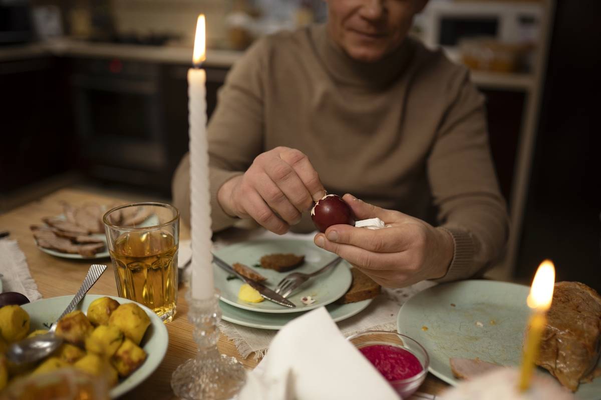 Глядя на вновь открывшиеся гастрономические возможности соблюдайте умеренность. Не нужно стремиться попробовать сразу все блюда, налегать на жирный соусы, майонезные салаты и запивать все это алкоголем. Достаточно одного яйца, кусочка мяса, немного творога или чуточку сдобной выпечки. Главная цель — не наесться, а символически «разговеться».