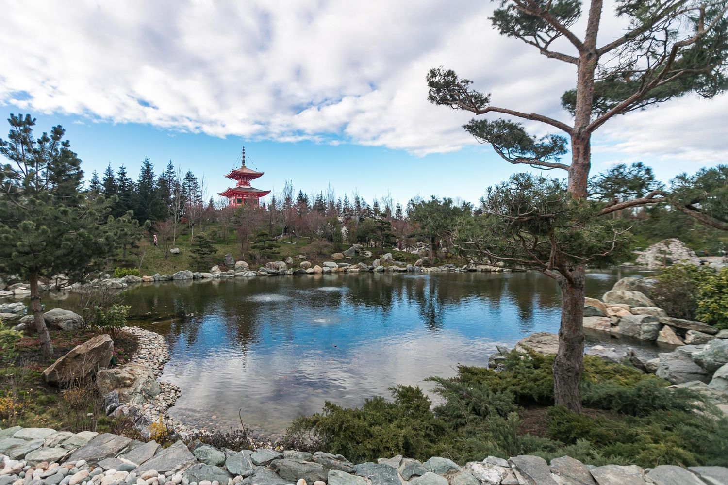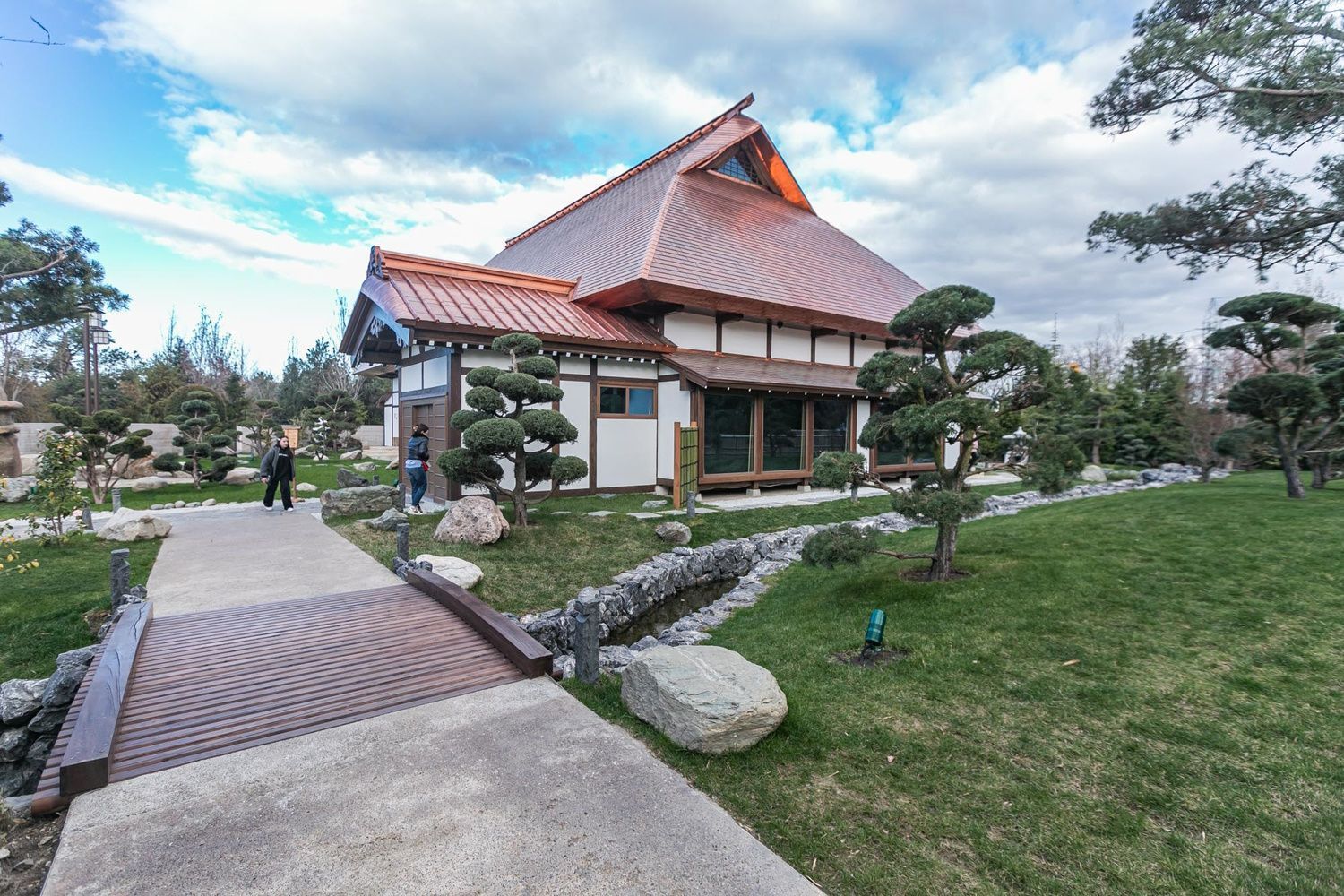 Площадь Японского сада составляет 7,5 га. На территории расположены 26 локаций, в их числе театр, пруд, водопад, сливовая роща.