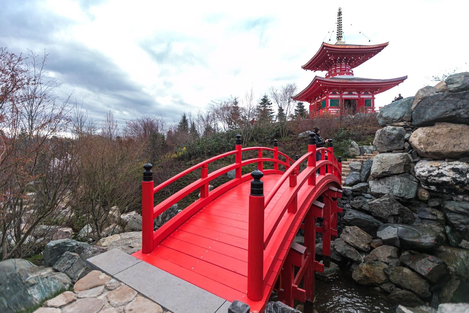 Площадь Японского сада составляет 7,5 га. На территории расположены 26 локаций, в их числе театр, пруд, водопад, сливовая роща.