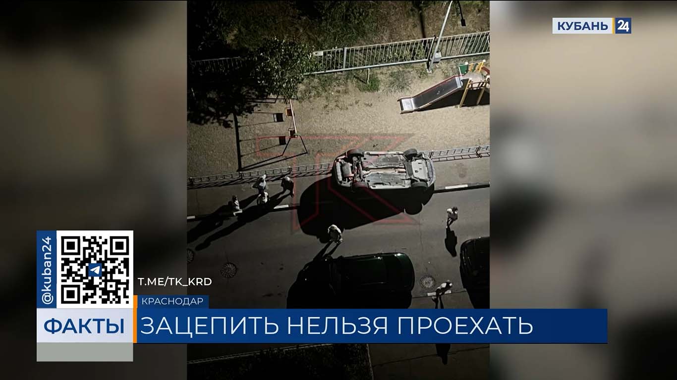«Без фары и правого крыла осталась препарированная машина. В этом месте уже другое авто перевернулось во время ДТП и упало на тротуаре. По счастливой случайности пешеходов в это время не было», — сообщает корреспондент телеканала «Кубань 24» Дарья Остапец.