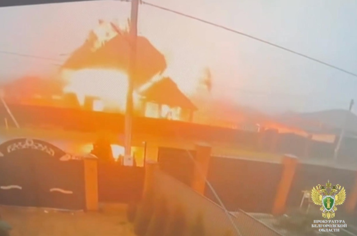 Момент взрыва попал на камеру. На кадрах видно, что в одном из окон красного кирпичного дома включается свет, проходит несколько секунд и проходит взрыв. От ударной волны стены дома разлетаются, а крыша подлетает в воздух.