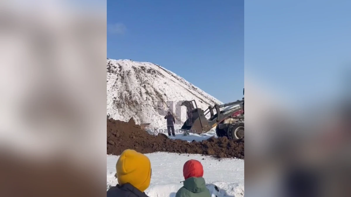 Однако никакие протесты не повлияли на результат, снежную горку засыпались землей. К конфликту взрослых подключились и дети — они забросами экскаватор снежками.