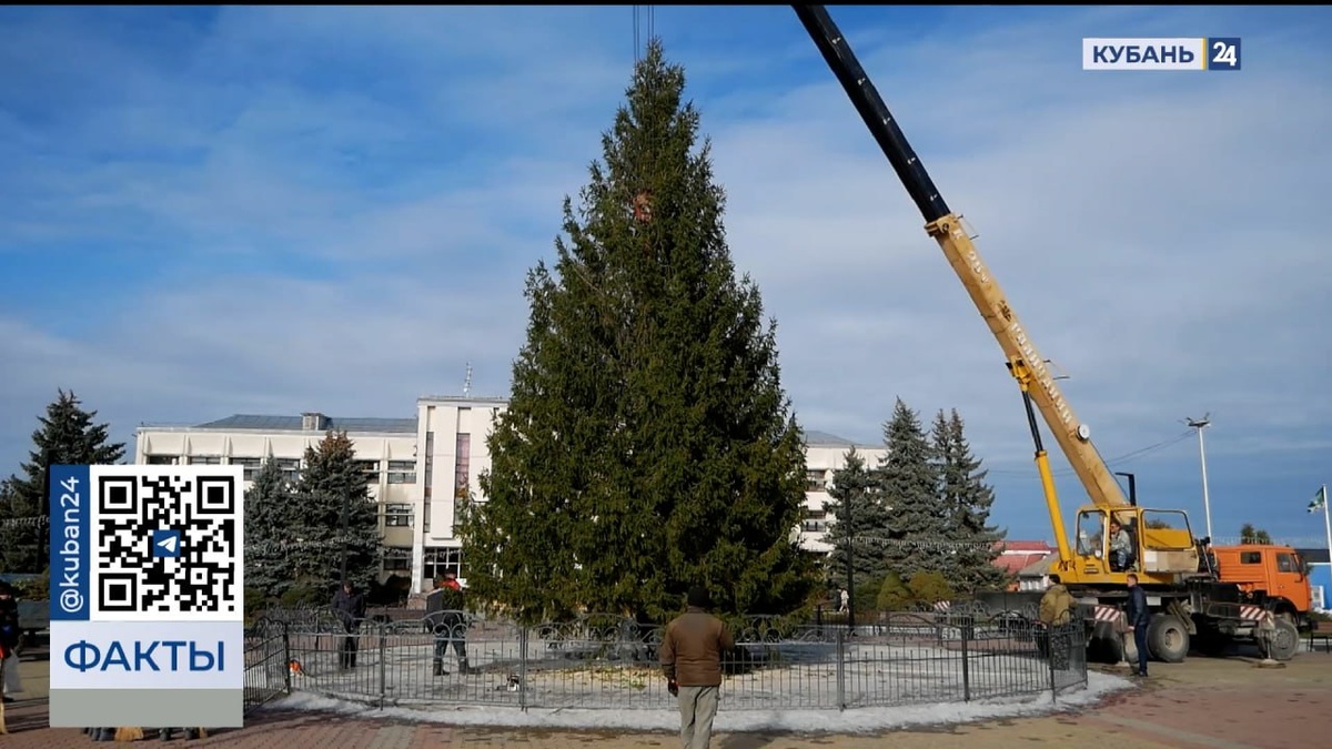 Новогоднее дерево высотой 15 м теперь радует жителей поселка Мостовского. Его разместили на площади Мира.