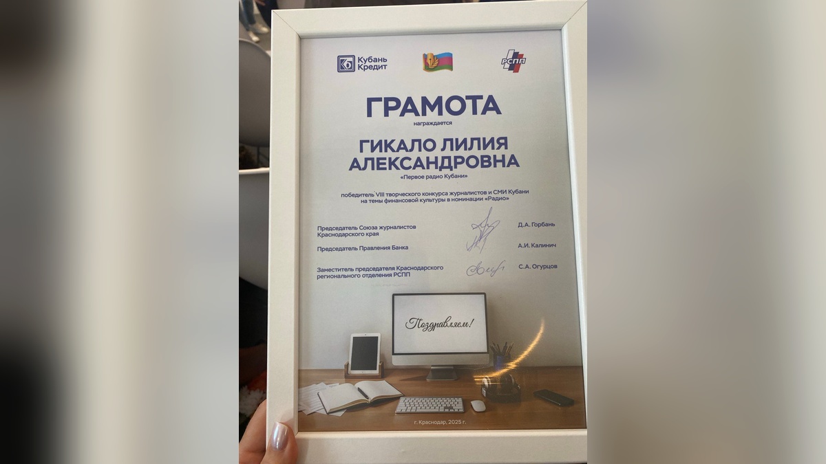 Победителем стала шеф-редактор и ведущая «Первого радио Кубани» Лилия Гикало за проект «Самое время», выпуск «Новые схемы развода россиян».