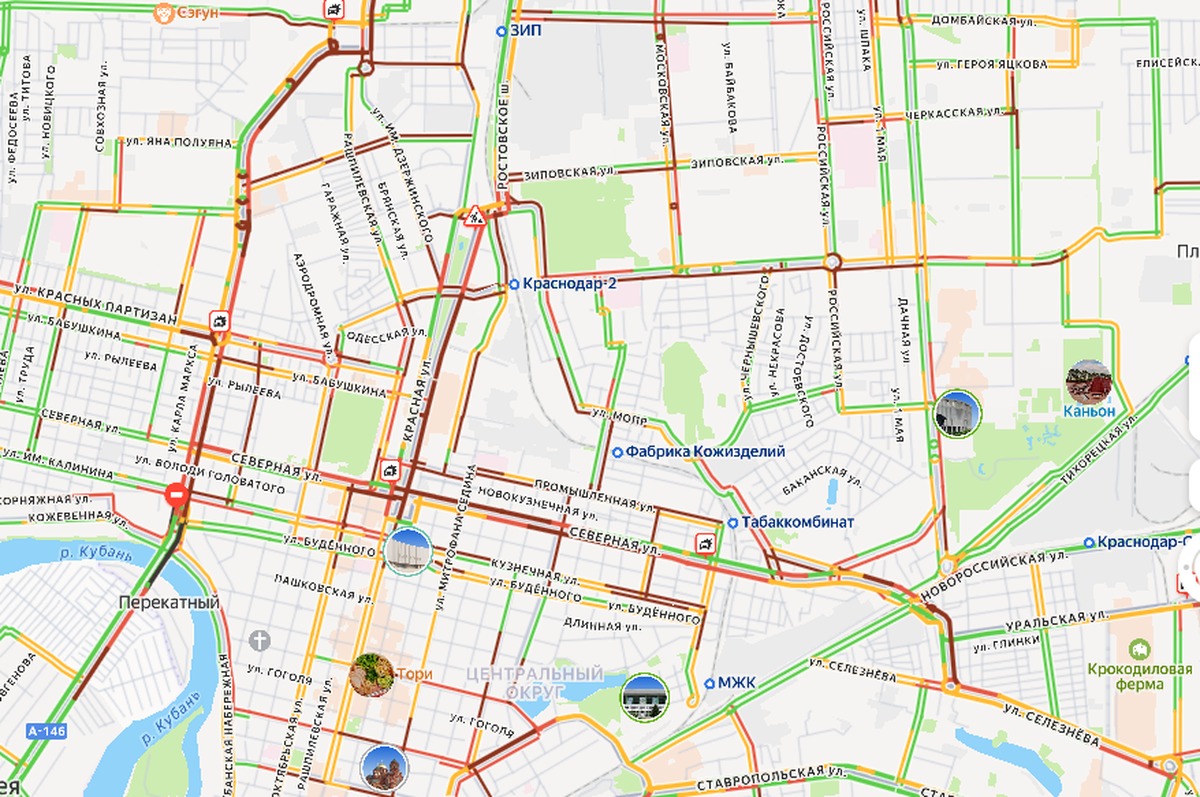 ОбществоПредновогодние пробки сковали Краснодар вечером 26 декабря26.12.2025 19:50В краевой столице весь вечер серьезные пробки. Они достигали 9 баллов. Чем ближе Новый год, тем сложнее ситуация на дорогах. Улицы города стали красными уже с обеда. Сложно проехать по центральной части. Практически полностью стоят Северная и Красная. Самые серьезные заторы на выездах из города. На улице Горячеключевской машины практически не двигались. Затор растянулся на